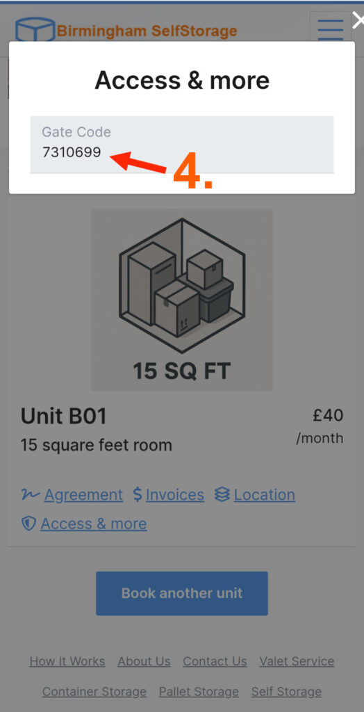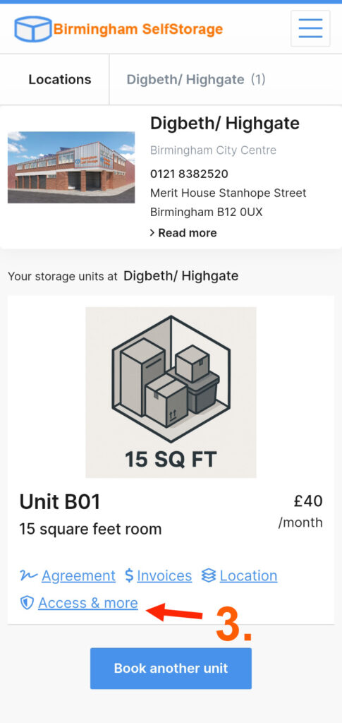Open your mobile browser and go to birminghamselfstorage.uk.